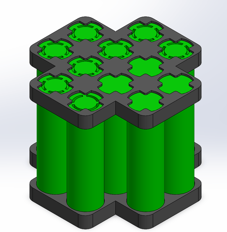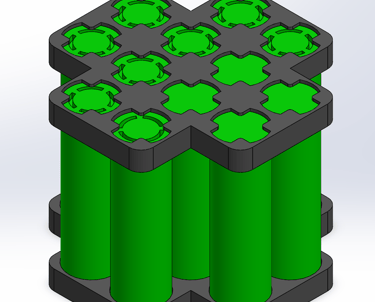 Optimized star-shaped cell holders to fit battery pack into a 4-inch rocket