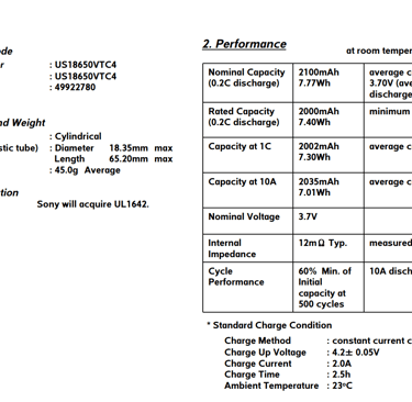 Capacity @ 2.5A (0.42C) and 2.8V Cut-off: 6261 mAh / 69.4971 Wh